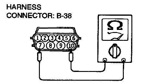 1. Disconnect connector B-38 and measure at the harness side.
