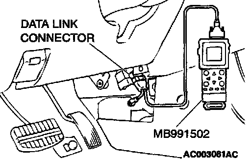 CAUTION: To prevent damage to scan tool MB991502, always turn the ignition switch to "LOCK" (OFF) position before connecting or disconnecting scan tool MB991502.