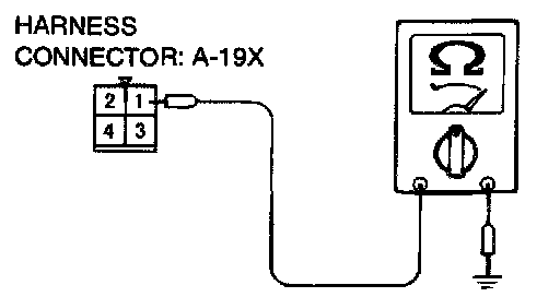 3. Measure the resistance between terminal 1 and 3 of A/T control relay connector A-19X. Should be than 2 ohm when the jumper wire connected. Open circuit when the jumper wire disconnected.