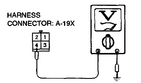 STEP 4. Check the power supply voltage at A/T control relay connector A-19X.