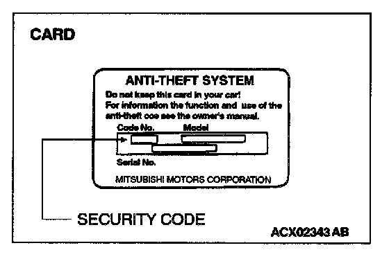 1. Use the security code indicated on the cards retained in the vehicle.