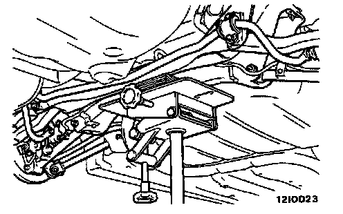 Support the crossmember with a garage jack or transmission jack to remove the crossmember mounting nut.