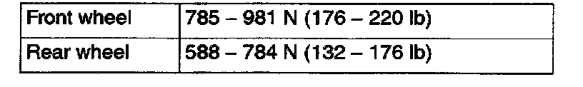 6. Turn the wheel by hand and check the change in braking force when the brake pedal is depressed. When using the braking force tester, depress the brake pedal until the braking force is at the following values, and check that the braking force changes to the brake drag force ins The result should be as shown in the diagram.