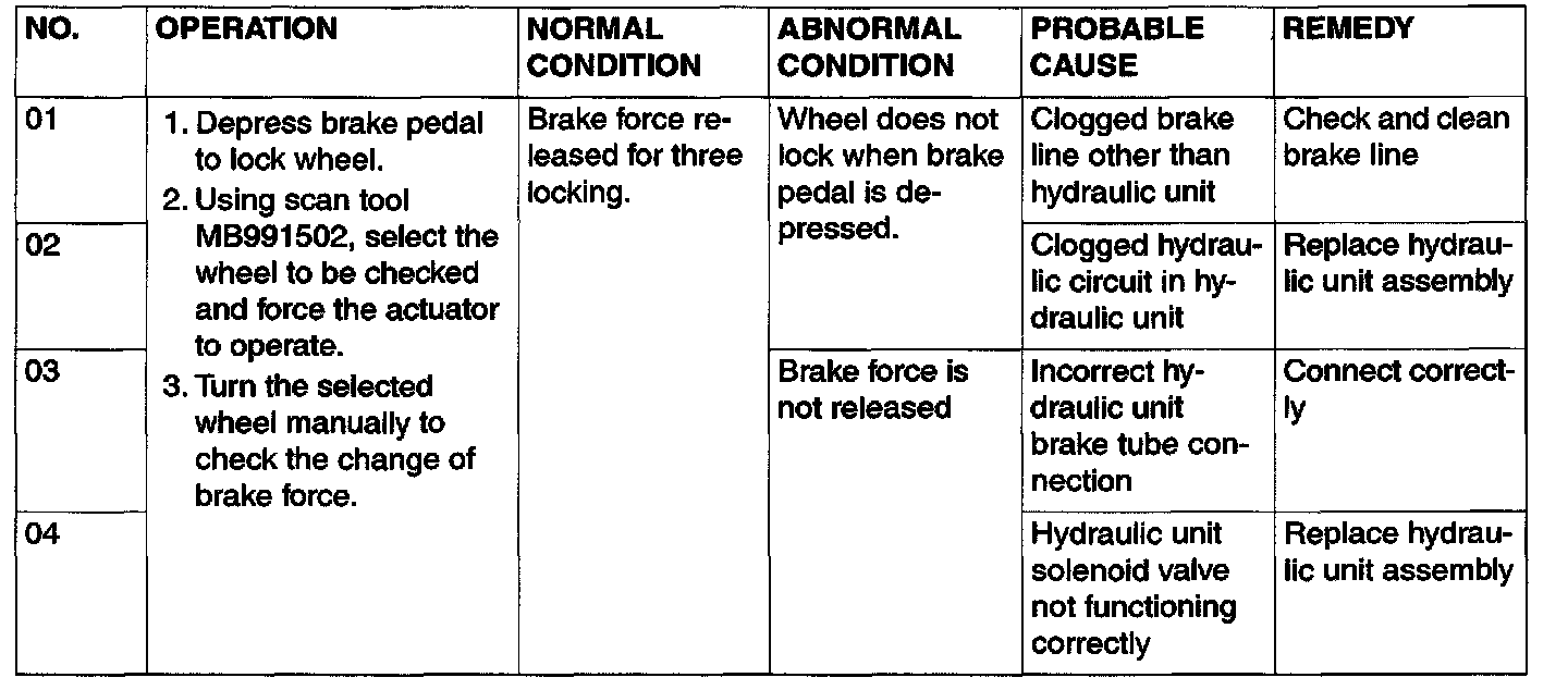HYDRAULIC UNIT CHECKRequired Special Tool: MB991502: Scan Tool (MUT-II)