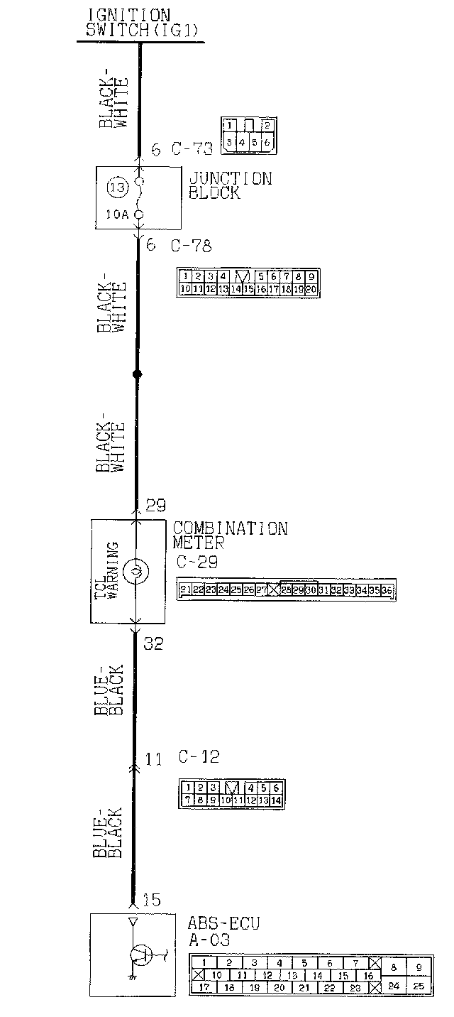 STEP 2. Check the harness wire between ABS-ECU connector A-03 and TCL warning light connector C-101.