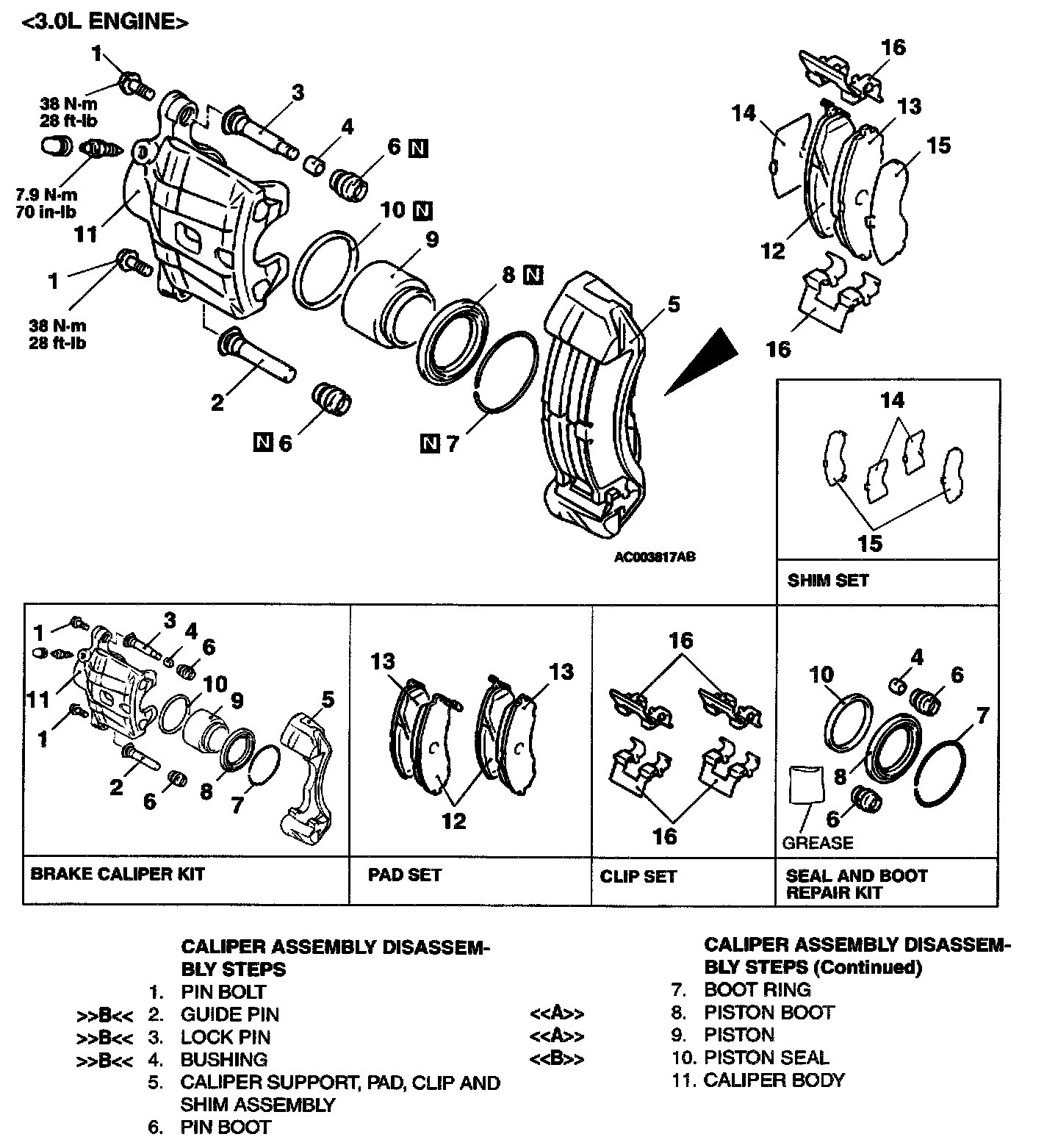 - Check the caliper body or sleeve for wear.
