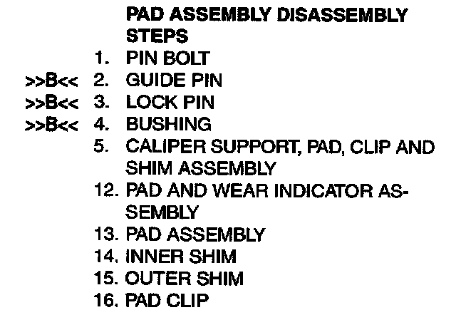 - If there is significant difference in the thickness of the pads on the left and right sides, check the sliding condition of the piston, lock pin and guide pin.