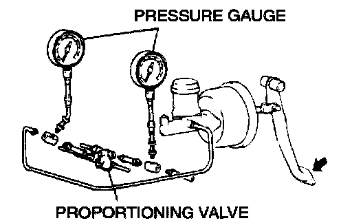 PROPORTIONING VALVE FUNCTION TEST1. Connect two pressure gauges, one each to the input side and output side of the proportioning valve.