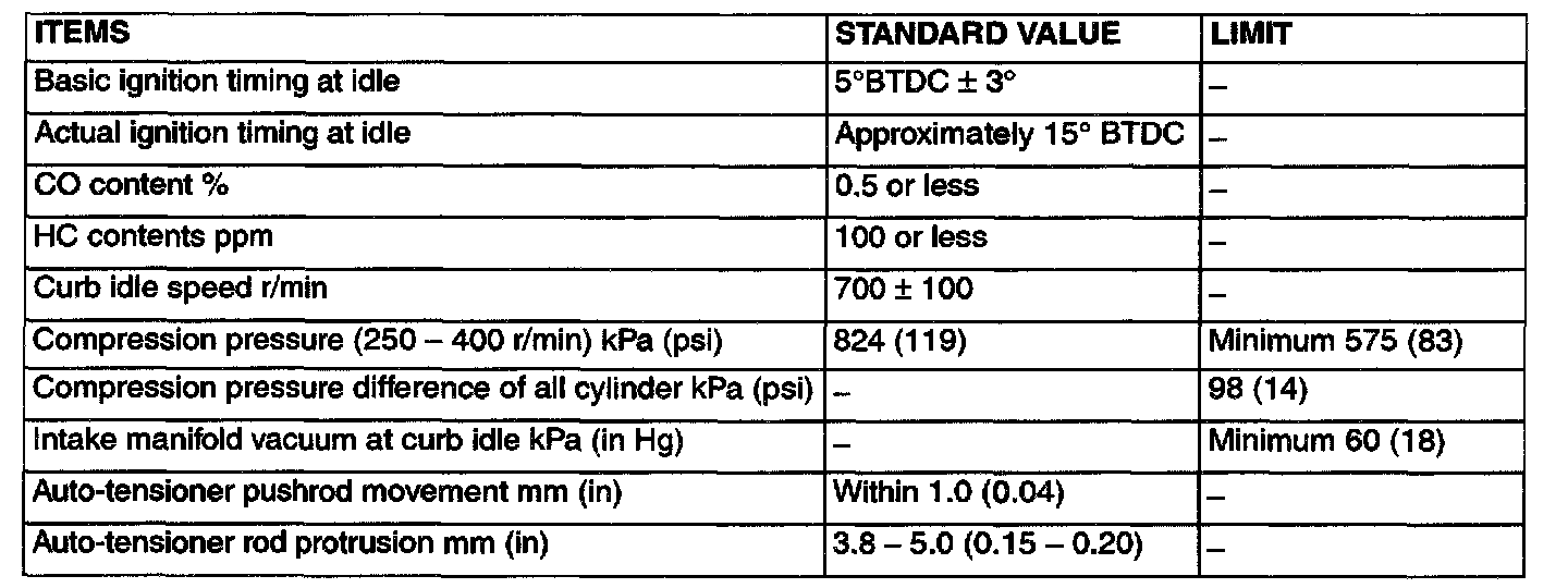 Engine-On Vehicle Service Specifications