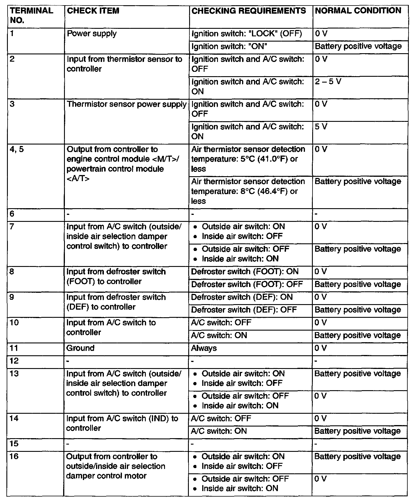 Terminal Nos: 1 - 16: