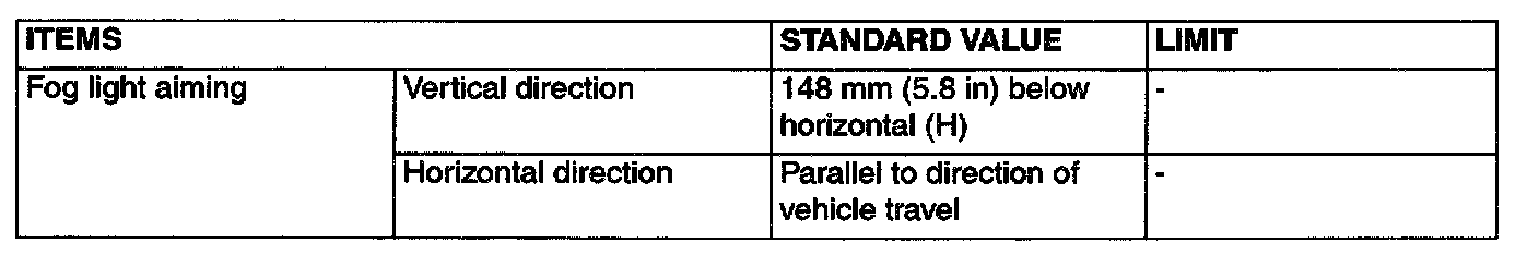 Service Specifications - Fog Light: