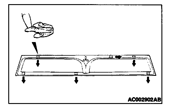 1. Remove the radiator grille by pushing all tabs of the radiator grille clips in the direction of the arrows with a flat-tipped screwdriver, then lightly pull the radiator grille toward you.