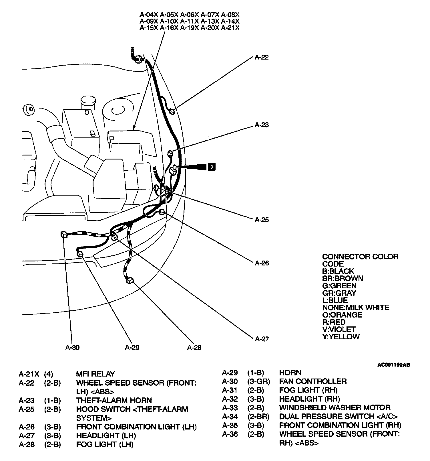 Engine Compartment A Connectors (A-01 Thru A-20X):
