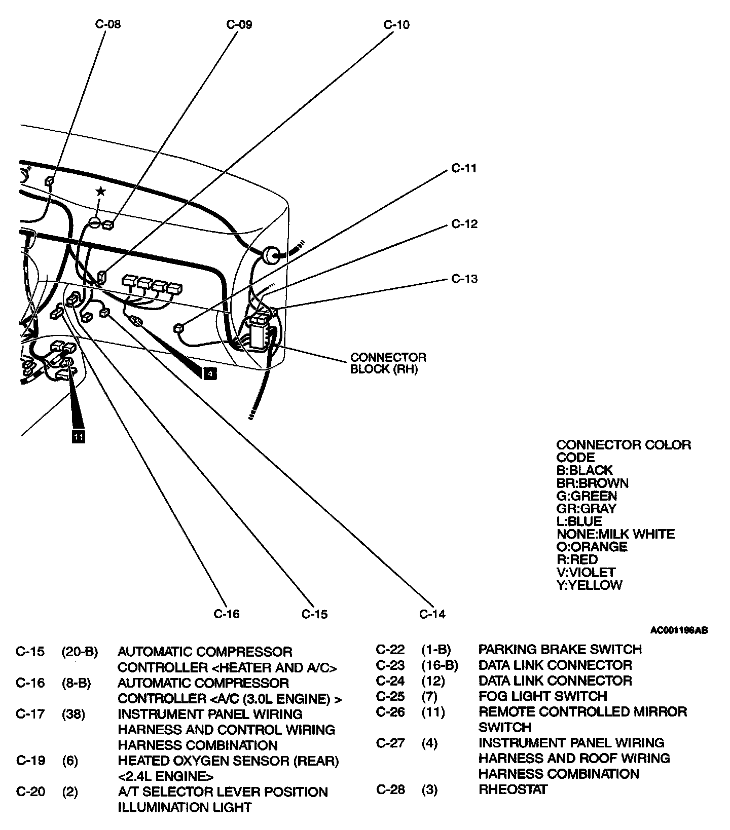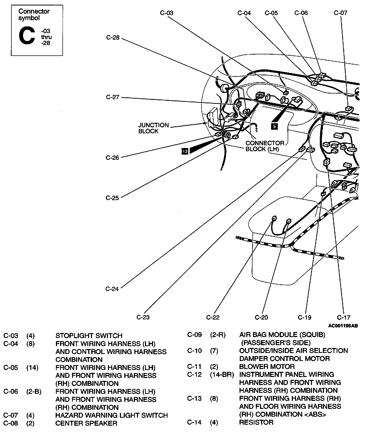 Dash Panel C Connectors (C-03 Thru C-14):