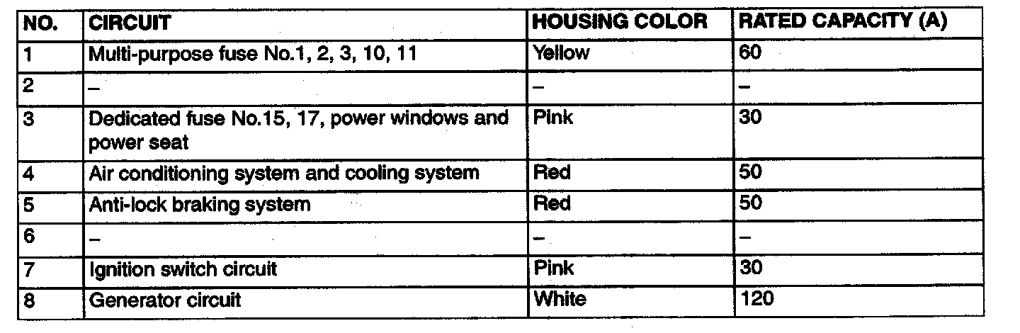 Fusible Link 1 - 7 (Relay Box In Engine Compartment):