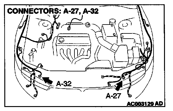 STEP 10. Check headlight connectors A-27 and A-32 for damage.