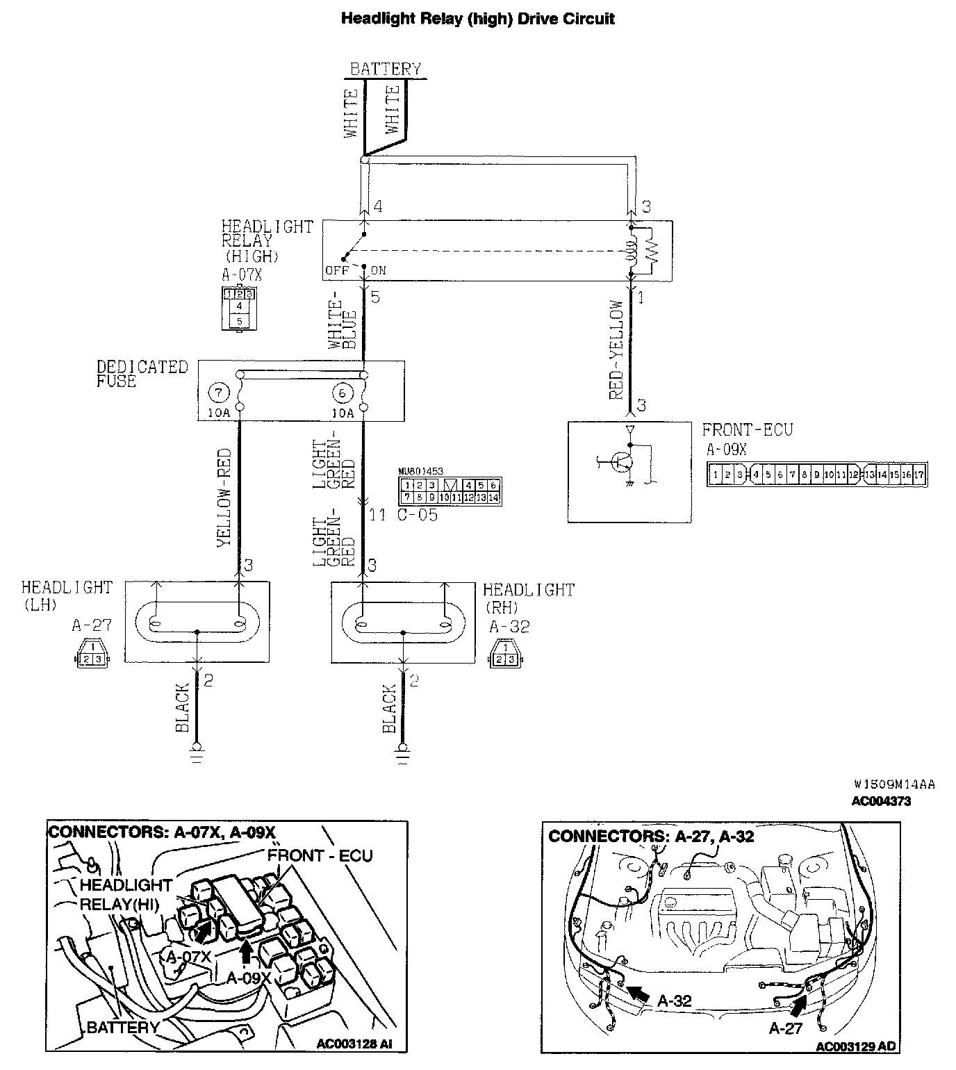 Q: Are headlight relay (high) connector A-07X and front-ECU connector A-09X in good condition?