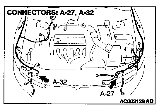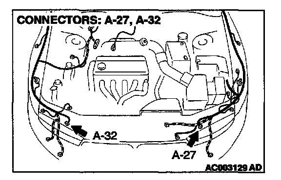 STEP 10. Check headlight connectors A-27 and A-32 for damage.