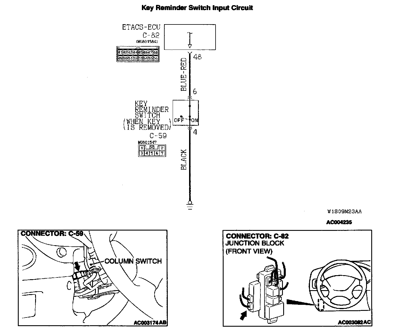 Q: Are key reminder switch connector C-59 and ETACS-ECU connector C-82 in good condition?