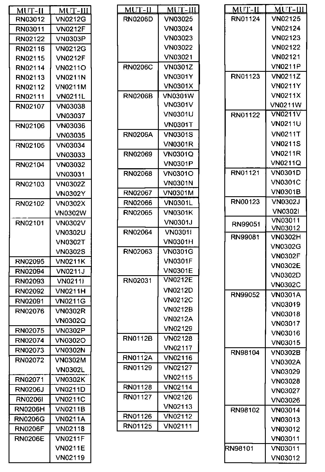 ATTACHMENT A - RN to VN Database Numbers