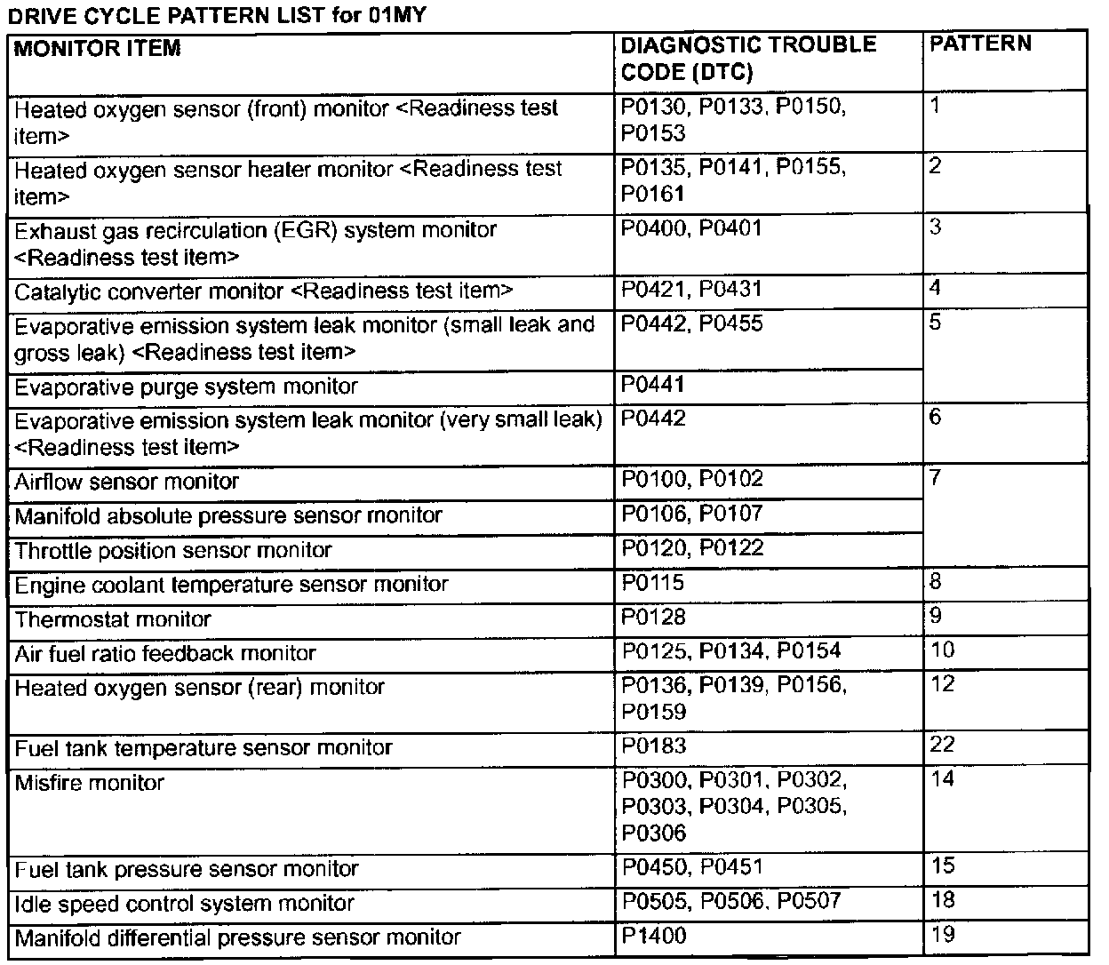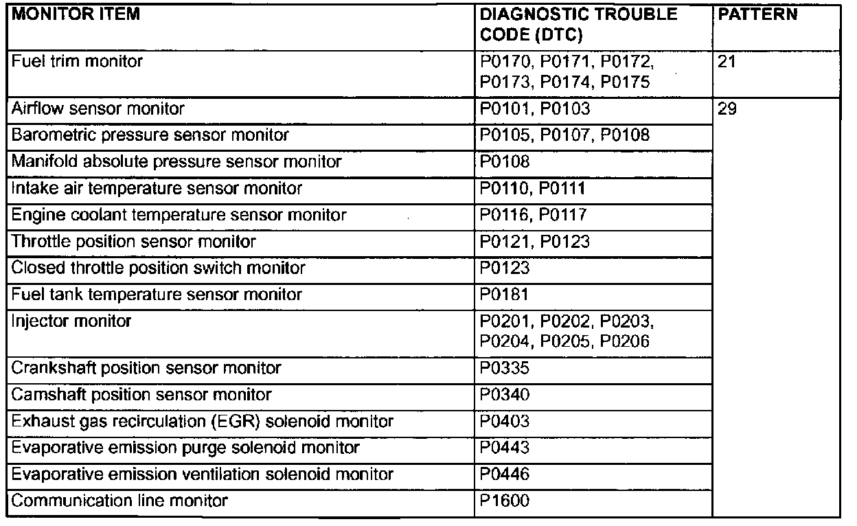 Drive cycle patterns are not established for Vehicle speed sensor monitor (DTC P0500) Closed throttle position switch monitor (DTC P0510). Power steering pressure switch monitor (P0551). Please reference the MUT data list to judge whether these monitor items are normal.