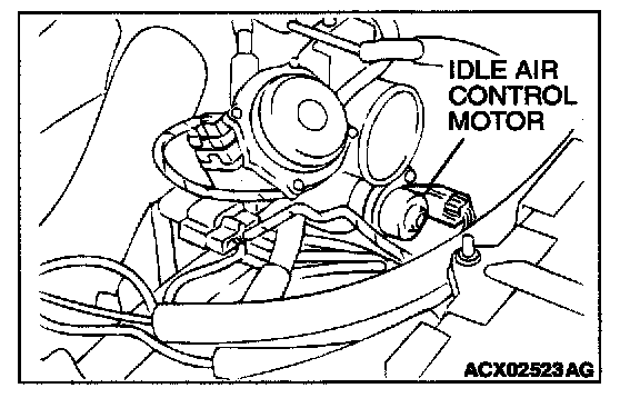 2. Check that the operation sound of the IAC motor can be heard after the ignition is switched to the "ON" position (but without starting the engine).