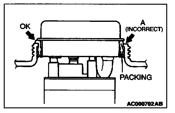 - The packing should not be folded over as shown by "A" in the illustration.