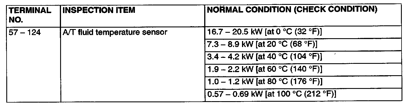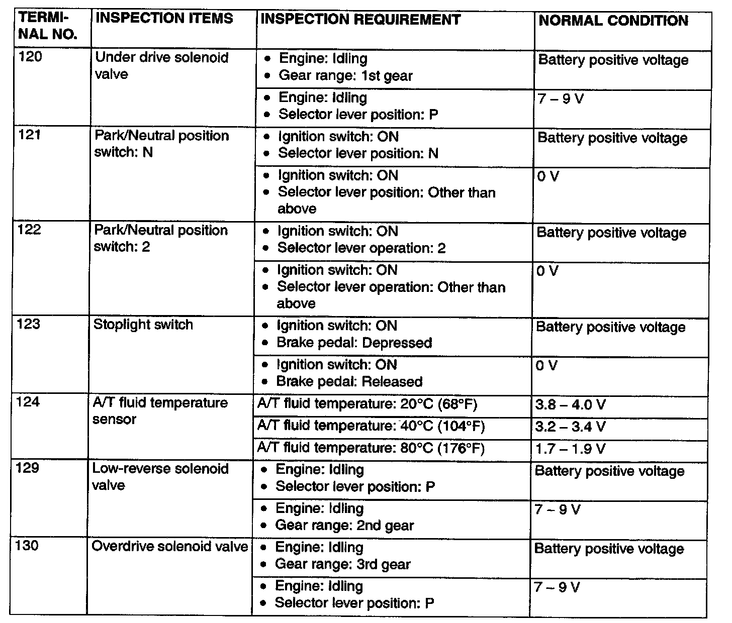 PCM TERMINAL VOLTAGE REFERENCE CHART FOR TRANSAXLE OPERATION
