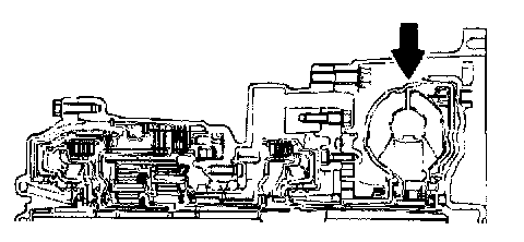 2. Check the torque converter for installation condition (whether installed in a slanted direction or not), its spline or its teeth for damage.