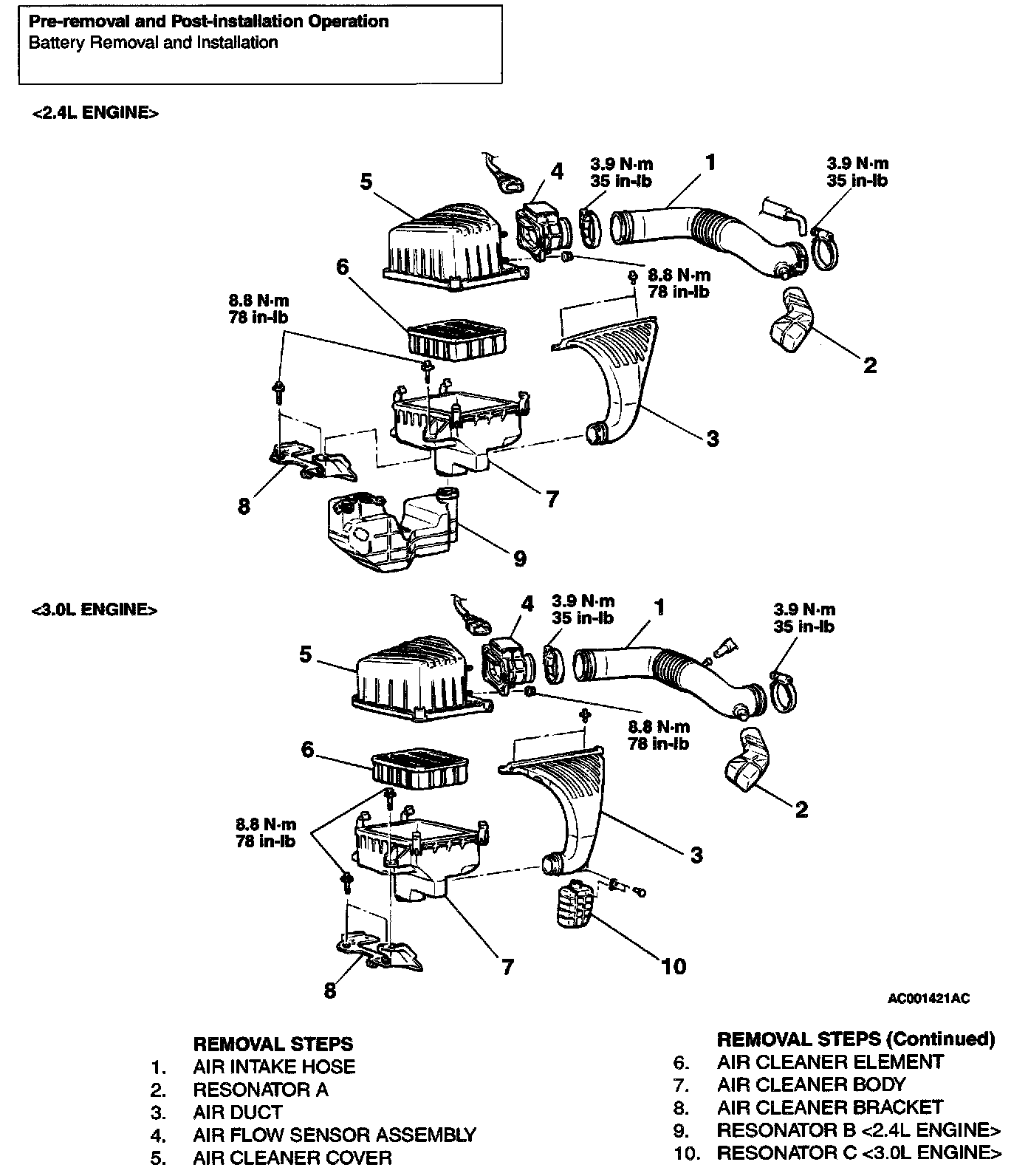 Air Cleaner - Removal And Installation: