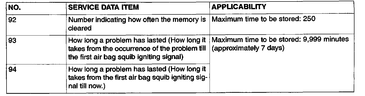 3. Read the data list (fault duration and how many times memories are erased) using scan tool MB991502.