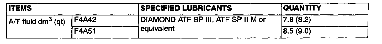 Transmission Fluid Tables