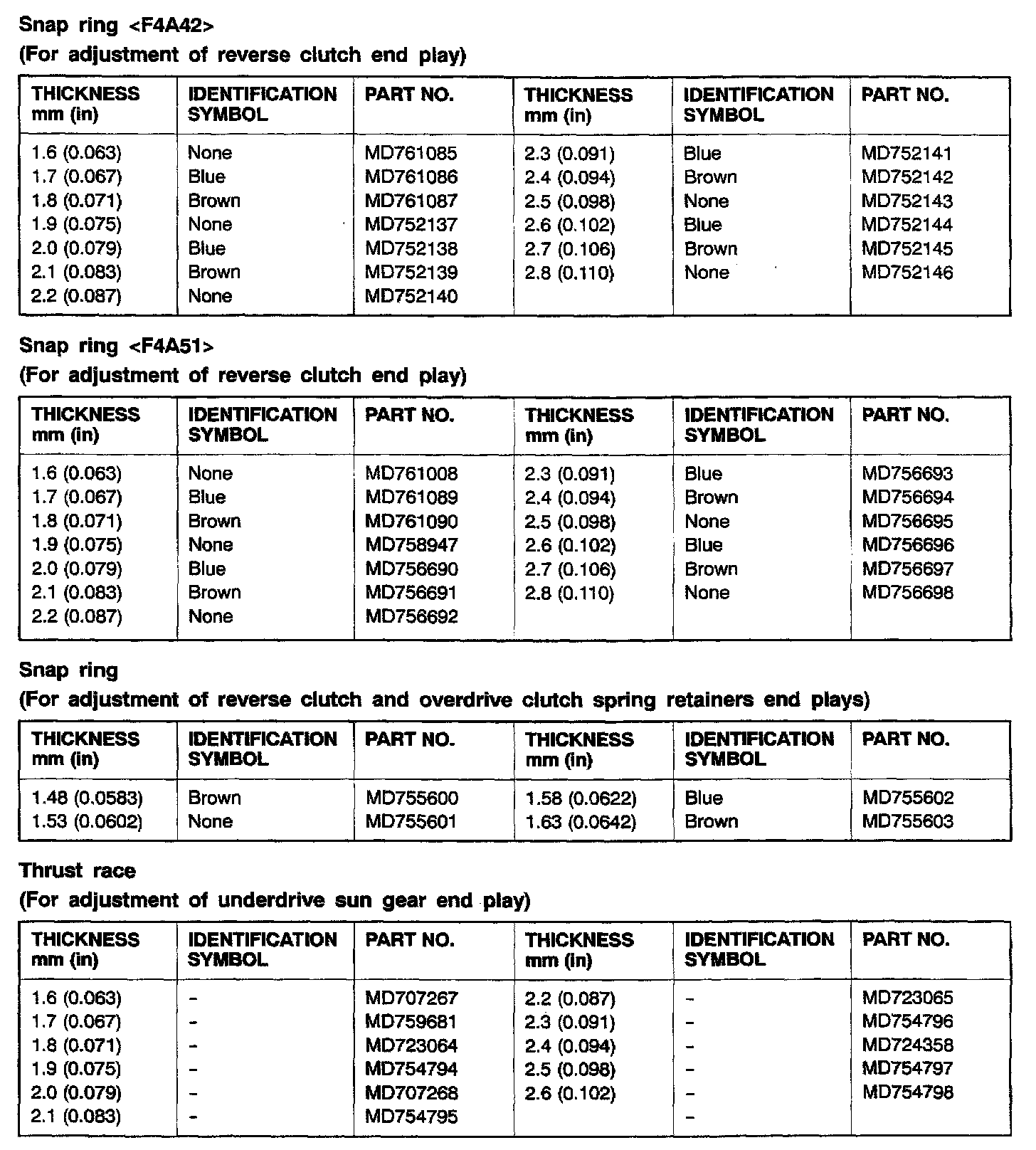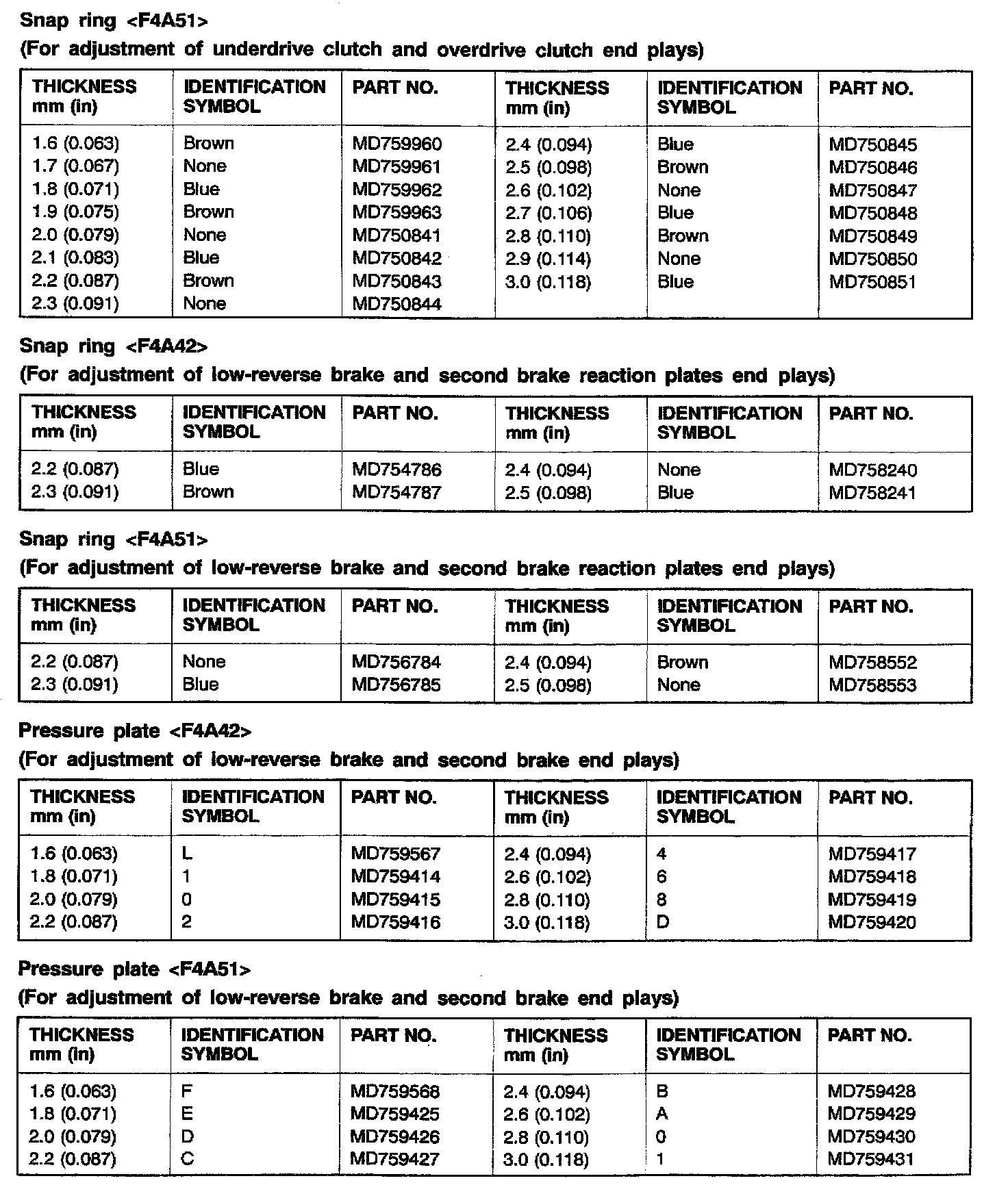 F4A42/F4A51 4-spd A/T, Snap Ring & Pressure Plate End Play: