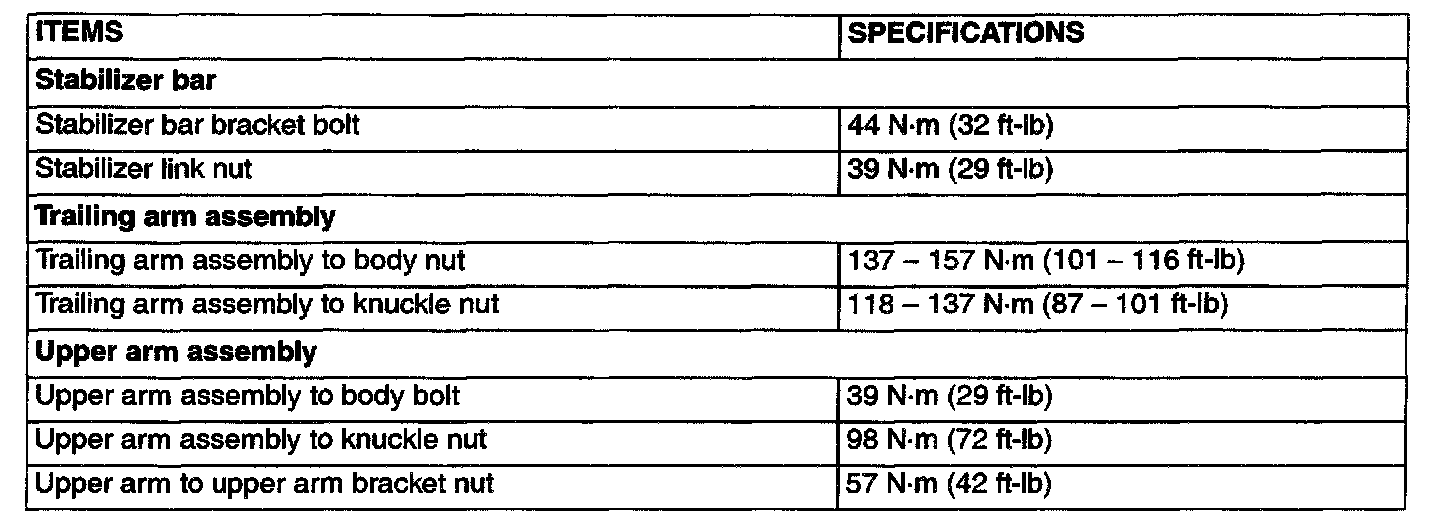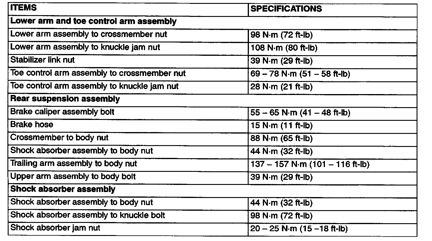 FASTENER TIGHTENING SPECIFICATIONS