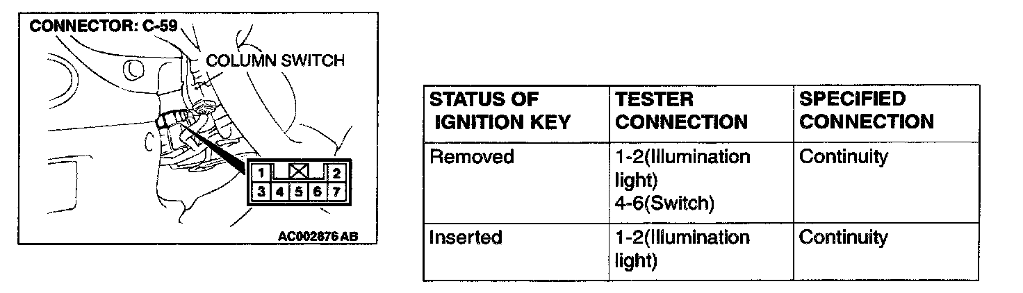 connector C-59 without removing the key reminder switch and steering lock cylinder.