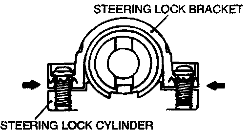 If it is necessary to remove the steering lock cylinder, use a hacksaw to cut the special bolts at the steering lock bracket side.