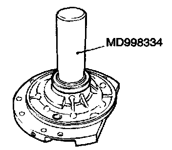 2. Use special tool MD998334 to tap the oil seal in the oil pump body.