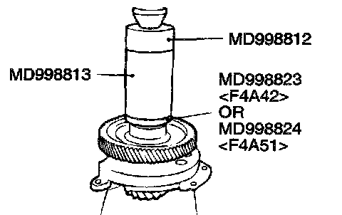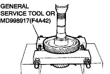 1. Support the transfer driven gear with general service tool or special tool MD998917 (F4A42), and then set them on the press.