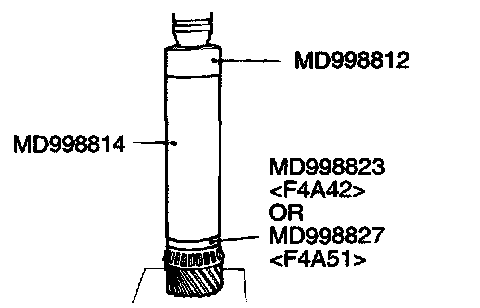 1. Support the taper roller bearing with the special tool MD998801, and then set them on the press.
