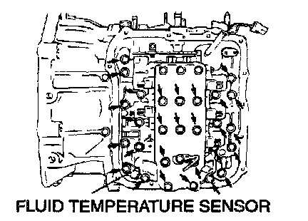 10. Disconnect the harness connectors from the solenoid valves and the fluid temperature sensor of the valve body.