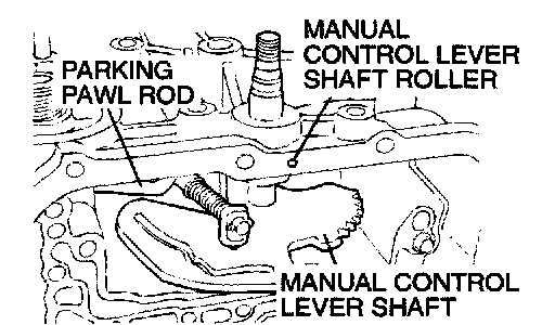 18. Remove the manual control lever shaft and the parking pawl rod.