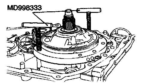 26. Install special tool MD998333 in hole "A."