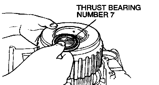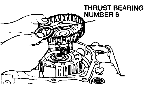 38. Remove overdrive clutch hub and thrust bearing number 6.