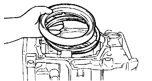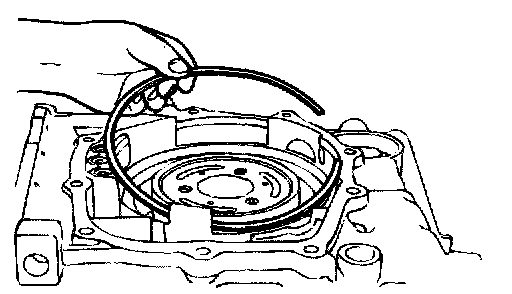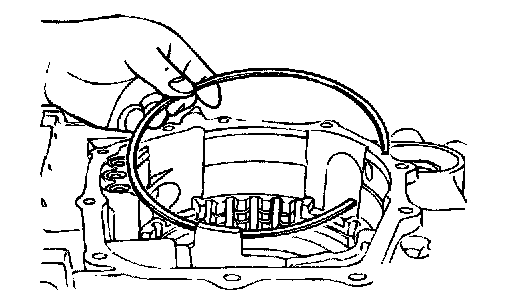 4. Remove the one-way clutch inner race, O-ring, spring retainer, return spring and low-reverse brake piston.
