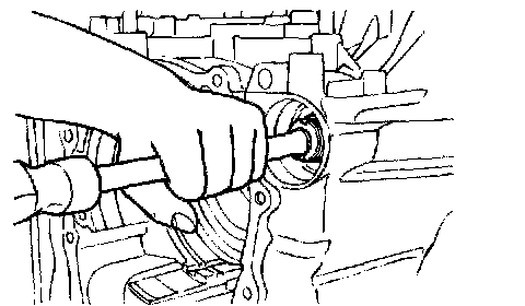 20. Remove the differential bearing outer race and spacer from the torque converter housing.