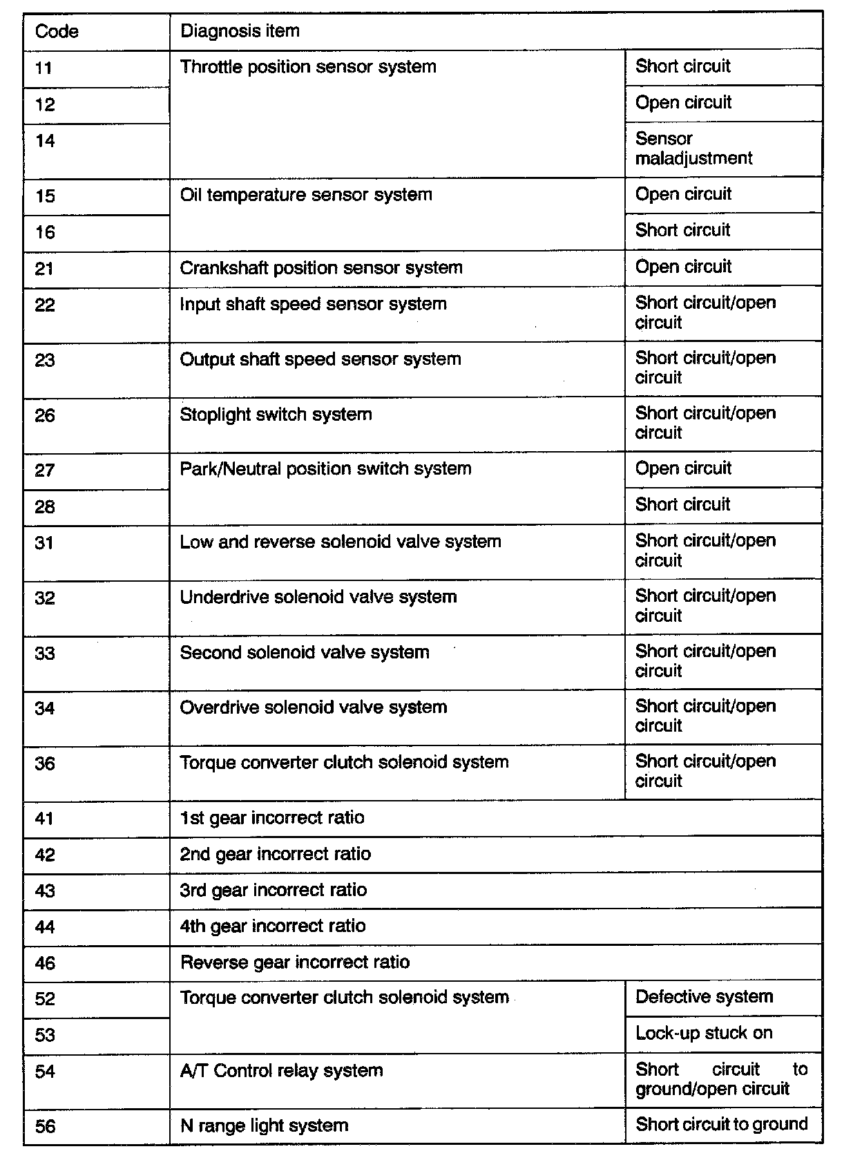 Diagnostic Trouble Code Descriptions