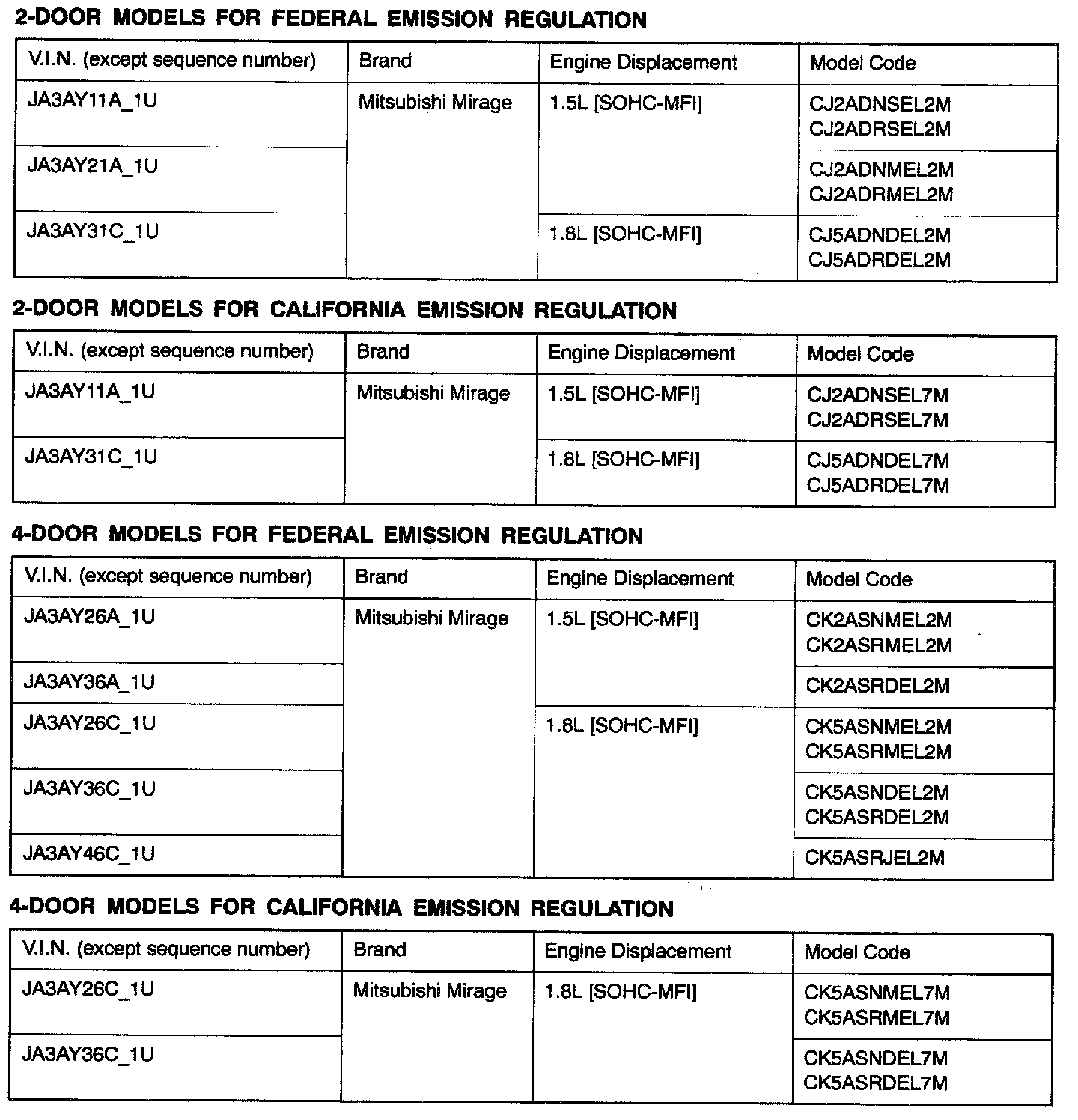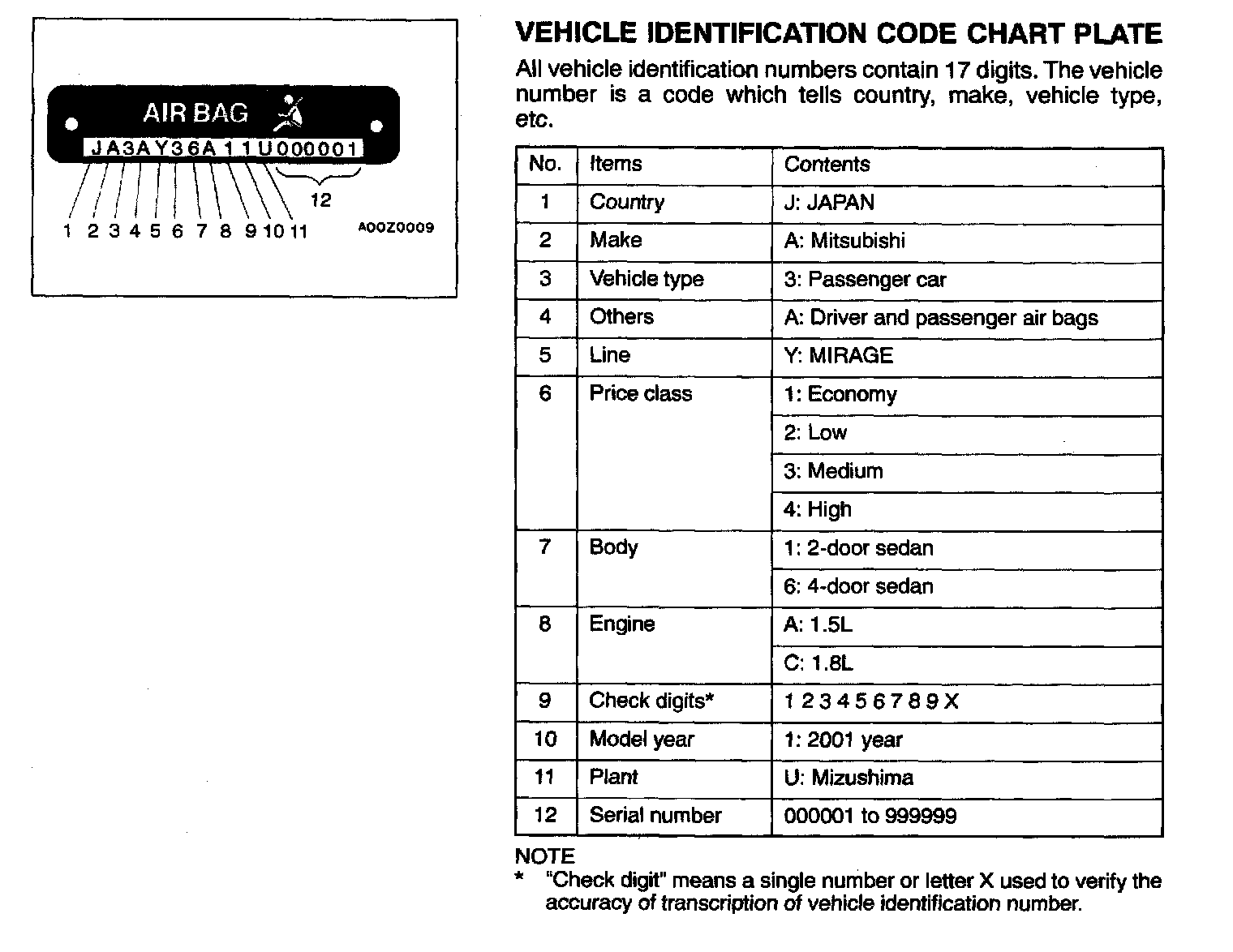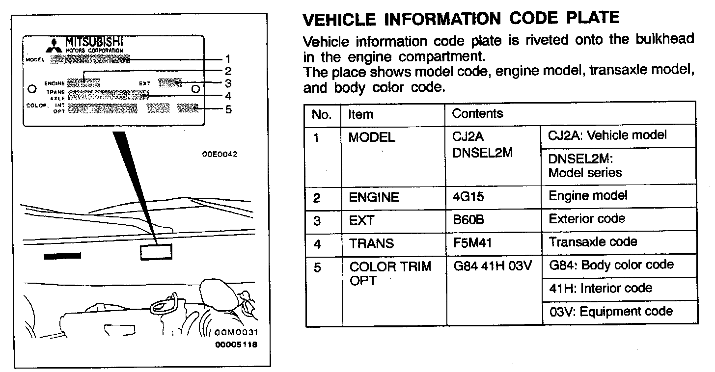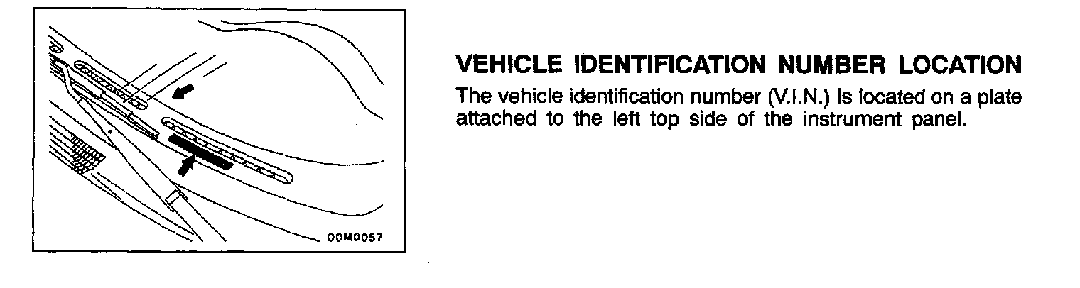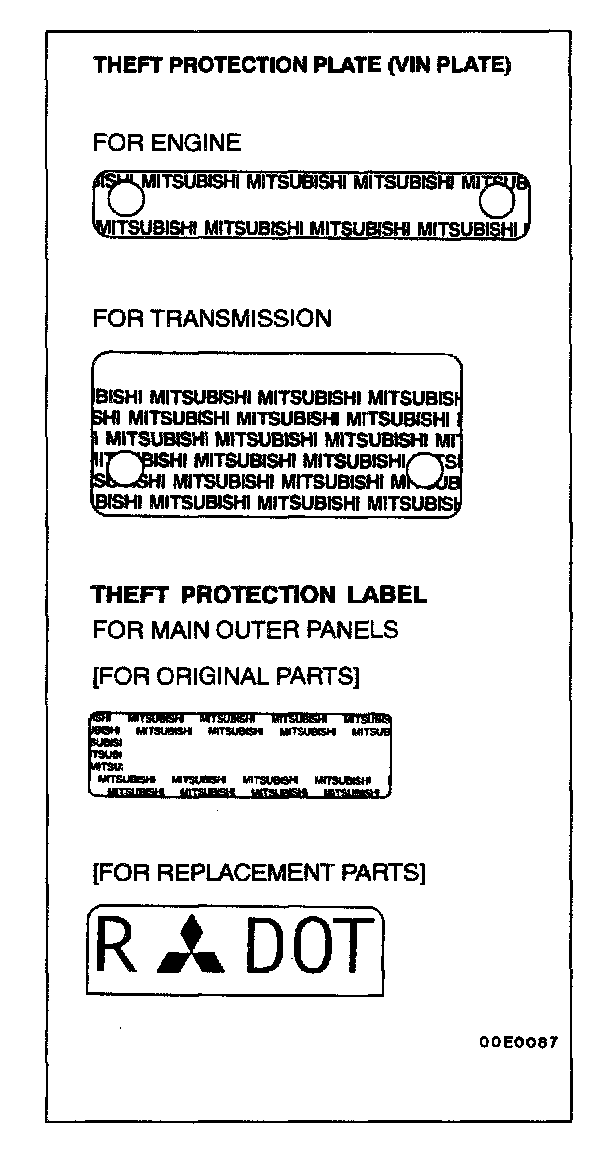In order to protect against theft, a Vehicle Identification Number (VIN) is stamped in, or attached as a label to, the following major parts of the engine and transaxle, as well as main outer panels: