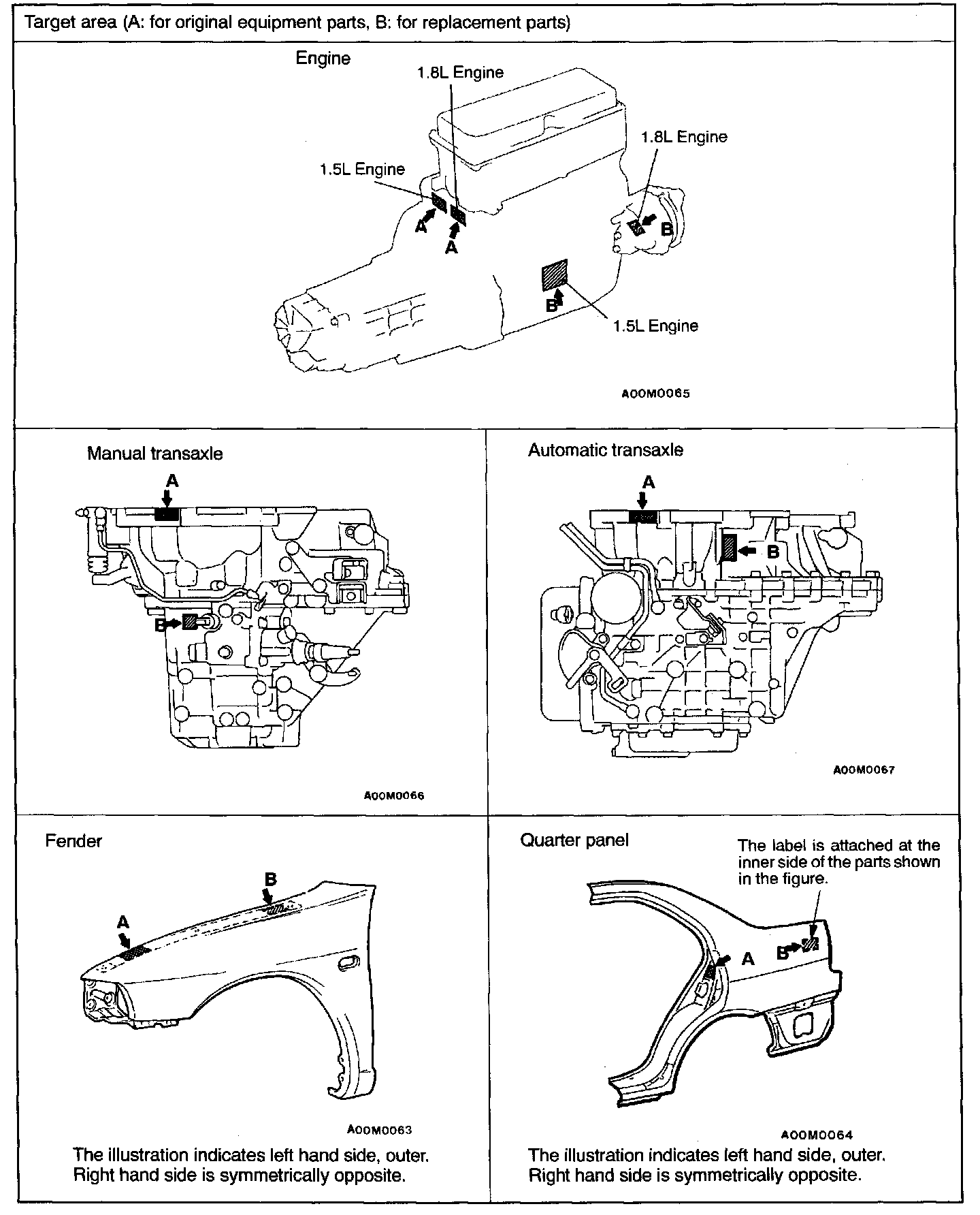 In addition, a theft-protection label is attached to replacement parts for the body outer panel main components, and the same data are stamped into replacement parts for the engine and the transaxle.