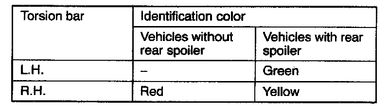 1. Check the color of the identification mark at the middle of the torsion bars to make sure that the correct torsion bars are being used.