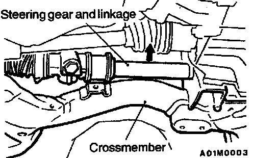 1) Move the crossmember while supporting the steering gear and linkage in the direction shown in the illustration.